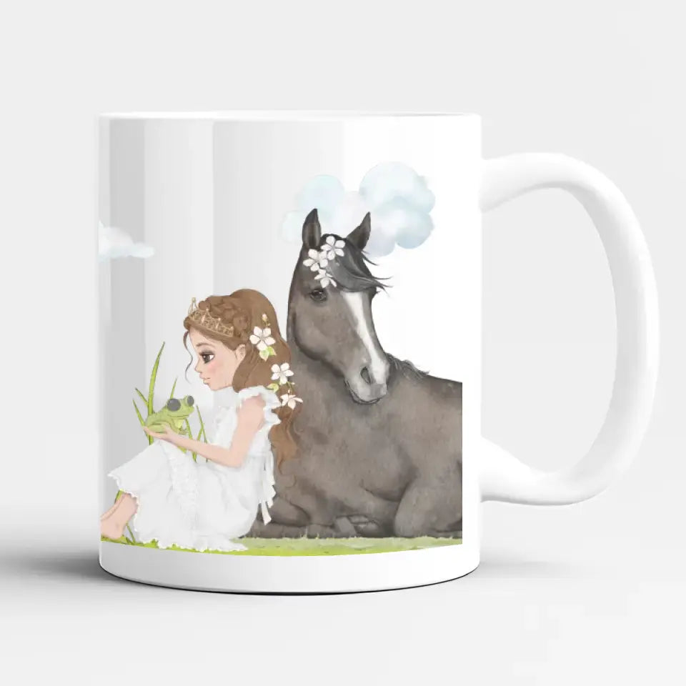 Kindertasse Prinzessin mit Pferd, braune Haare