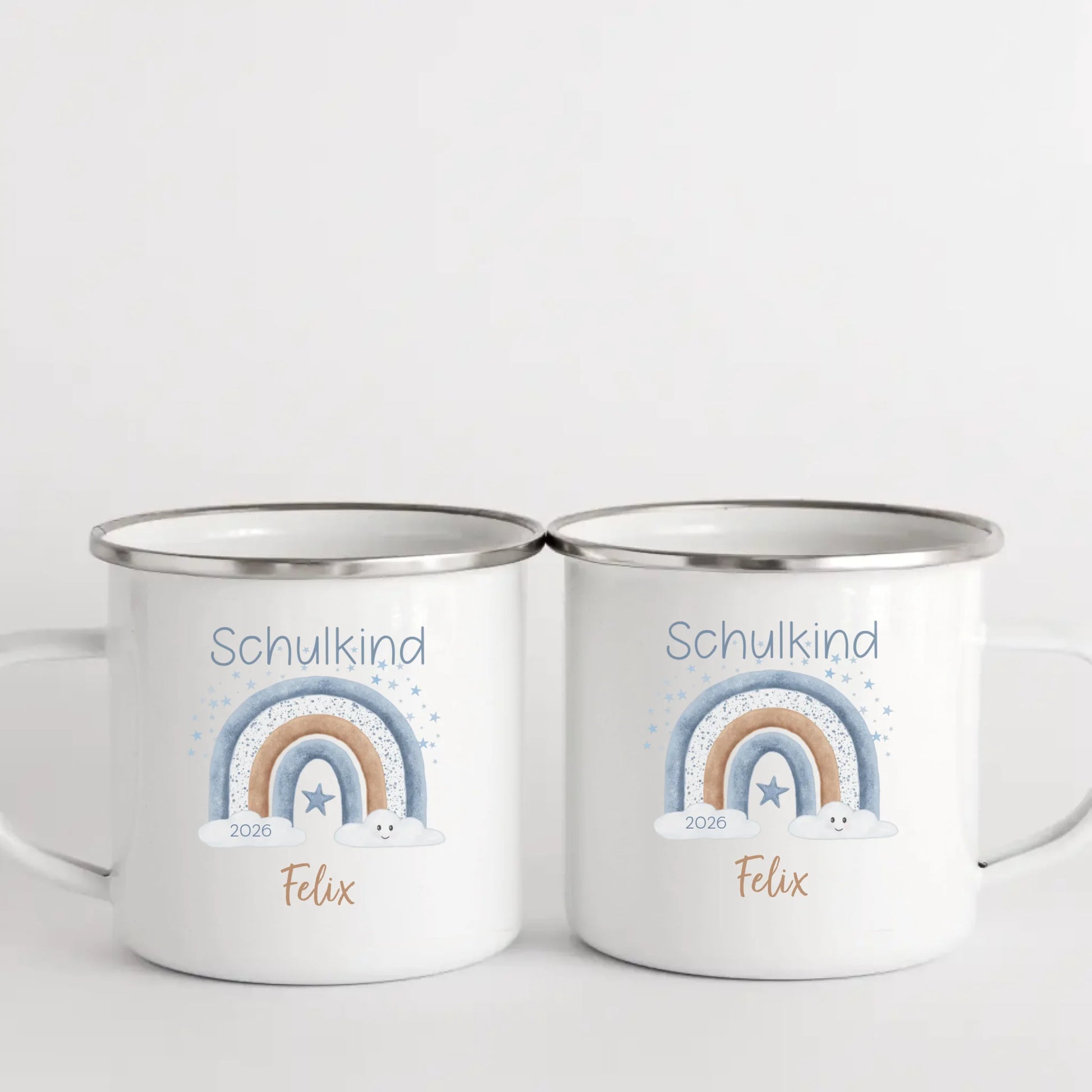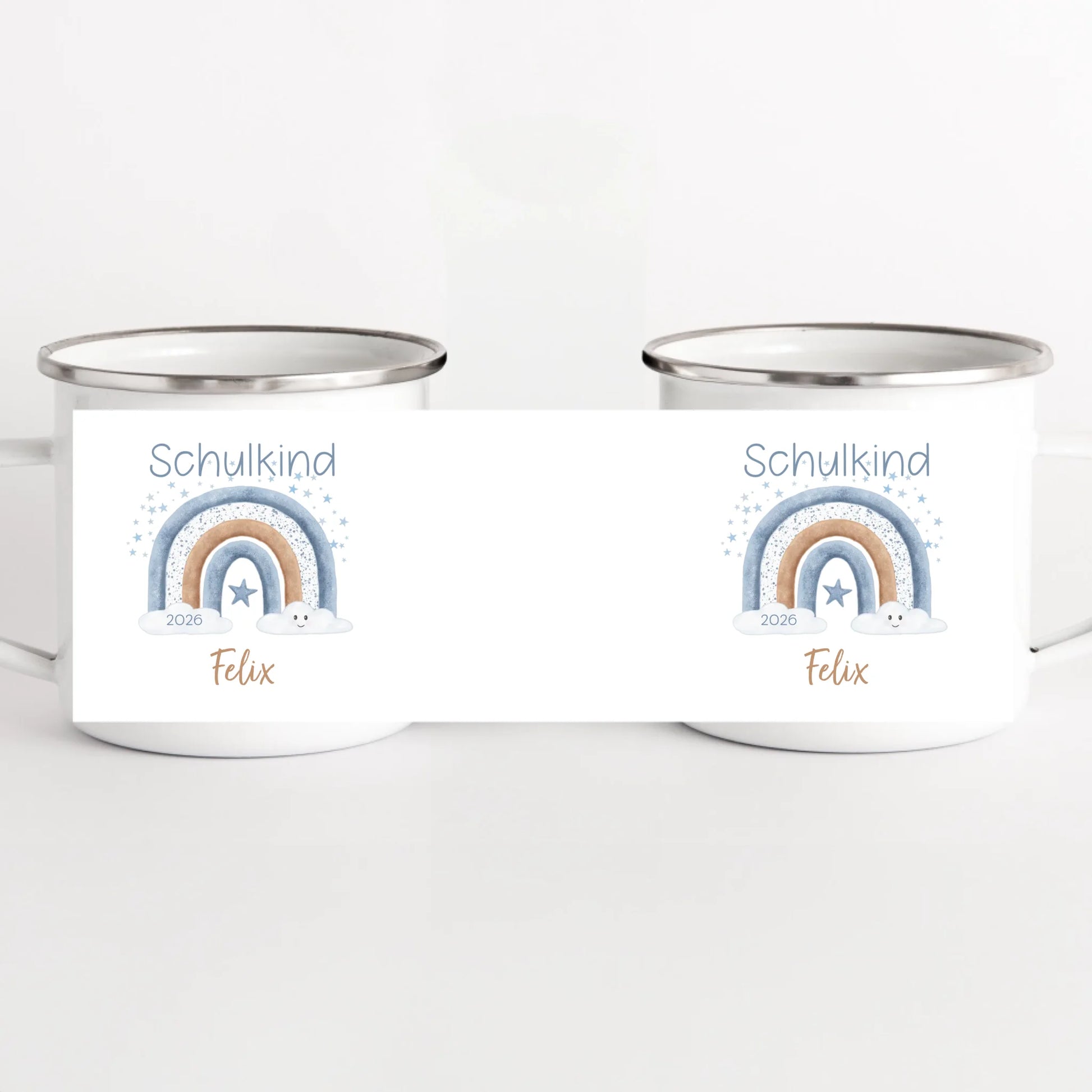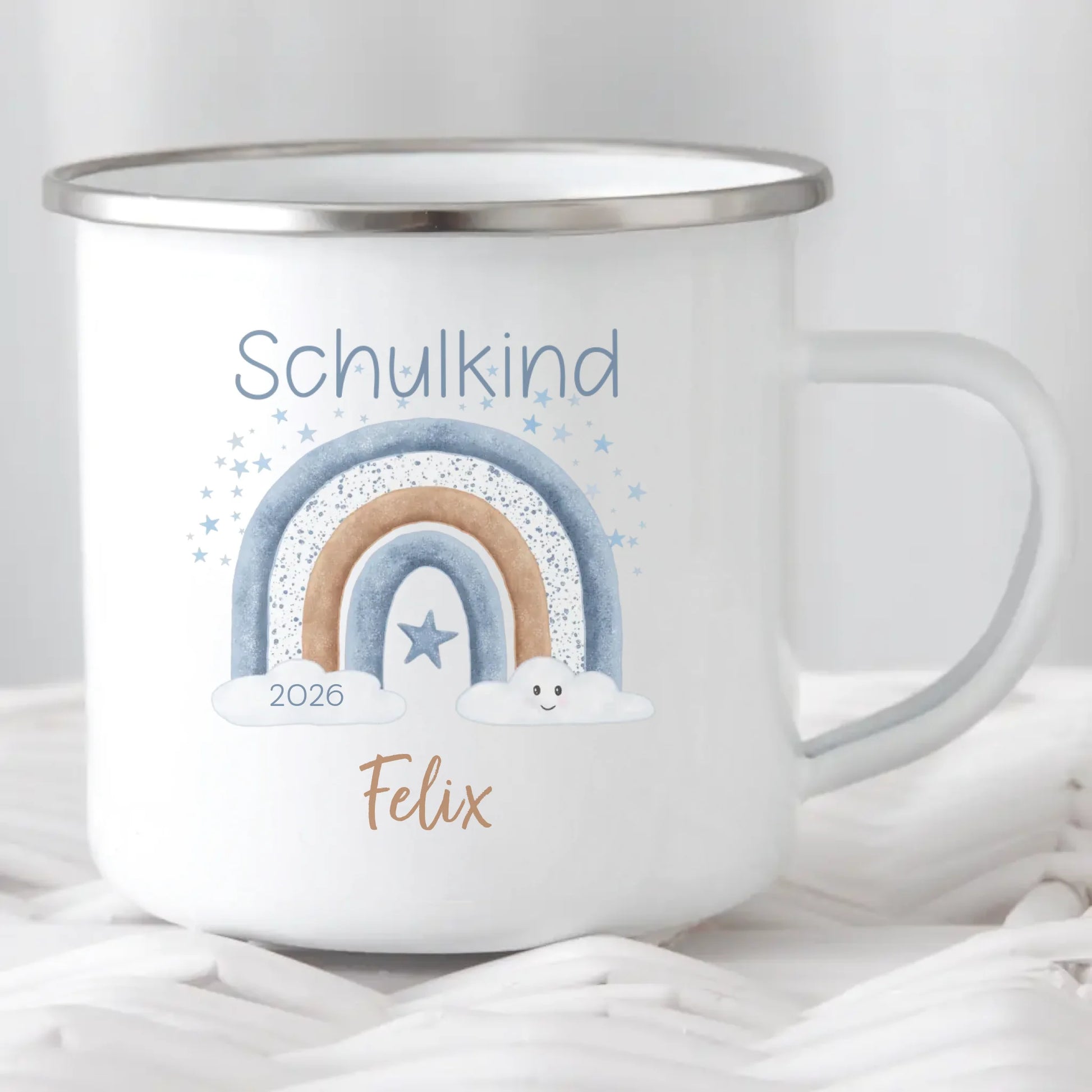 Kindertasse zur Einschulung, Regenbogen mit Sterne